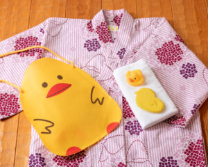 ▲お子様用レンタル浴衣とアメニティセット(ひよこ)