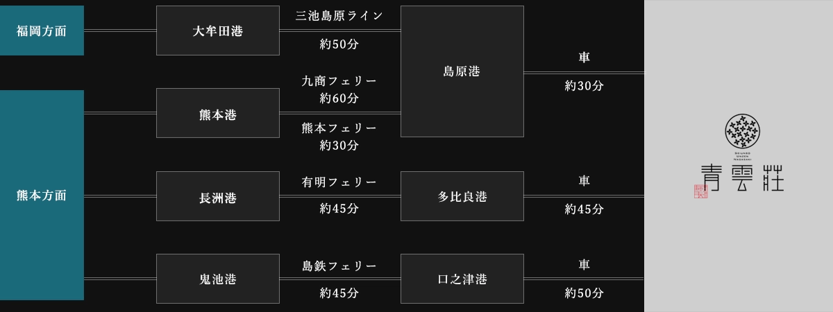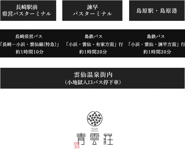 ■ 長崎市内からお越しの方:長崎県営バス「長崎-小浜・雲仙線(特急)」のご利用がおすすめです。