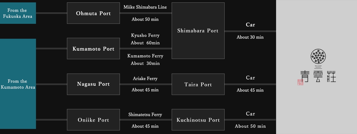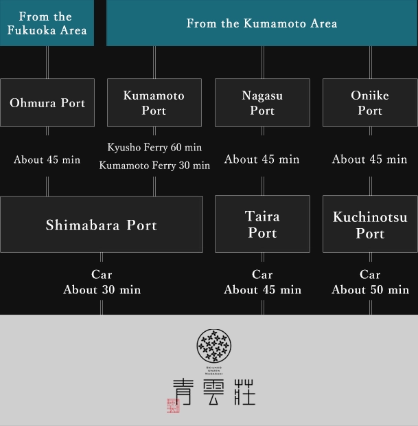 ■By Rental Cars:We recommend a rental car from Nagasaki Airport. It is about 1.5-hour drive.