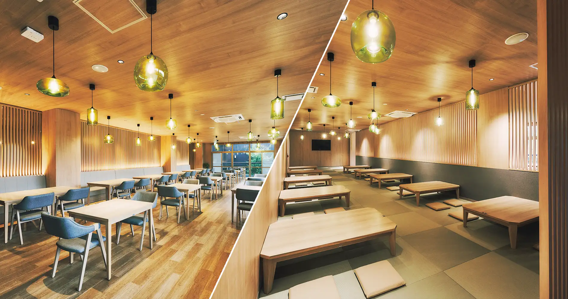 Next to indoor baths. There are tatami space and chair space to let hot spring users rest after bathing. Food and drinks are served. Shochu can be ordered by bottles. Enjoy tasty drinks after hot springs.