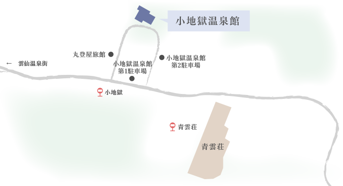 青雲荘から徒歩約5分ほどあがったところにある小地獄温泉館。